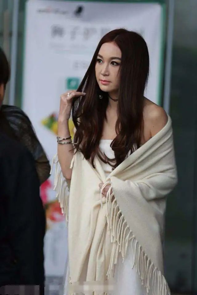 很多时候我们看到的温碧霞整体的打扮都会显得比较的性感,这个时候她里面穿的是一条白色的裙子,这条裙子是露肩膀的设计,不过外面又有一件披肩,这样的话感觉显得整个人其实也会比较的妩媚。