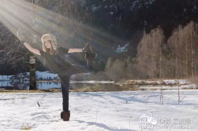 冬日雪地里练习雪地瑜伽,阳光里的笑容再一次明媚了整个世界: