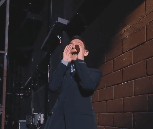 走下舞台依次与马东拥抱感谢,对化妆师鞠躬,给现场乐队老师们竖起大拇指。