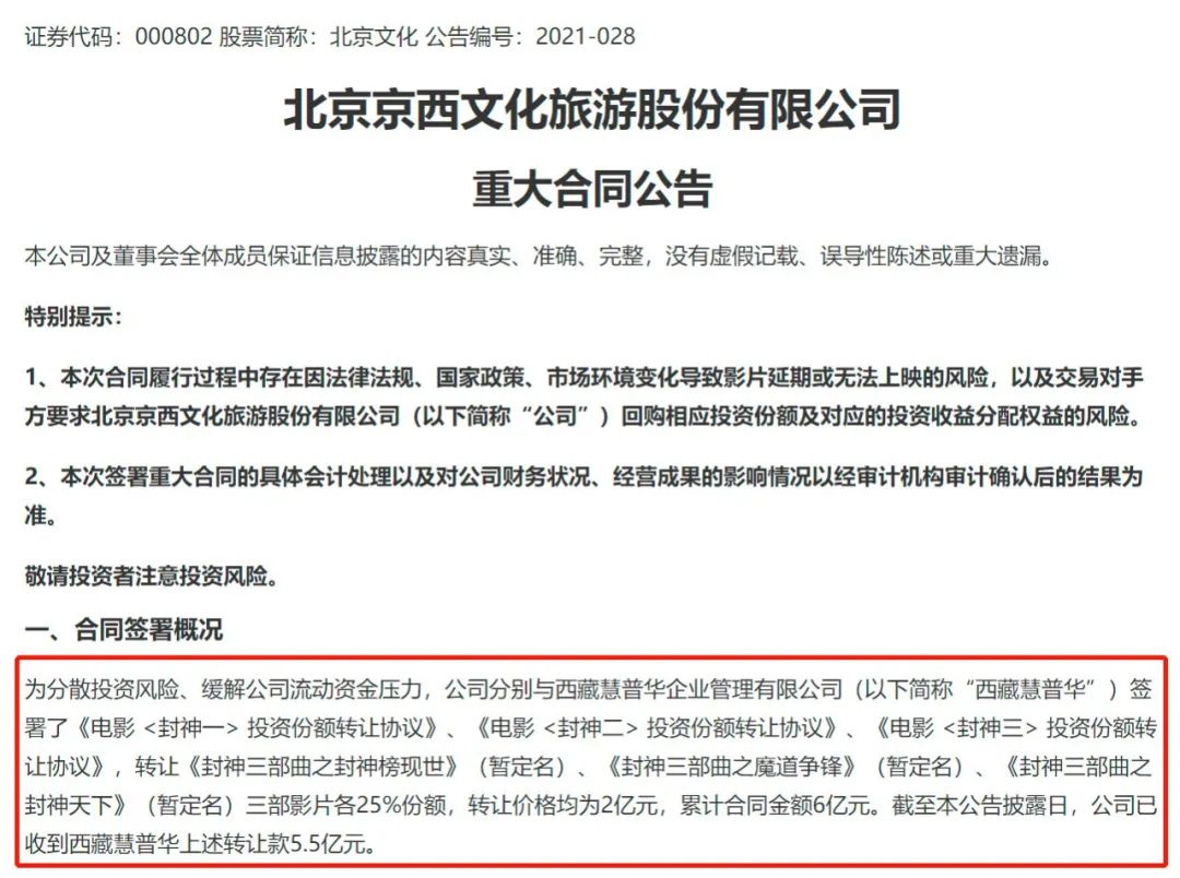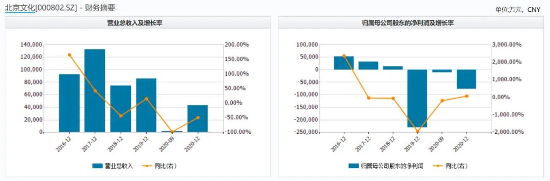 郑爽被查!这家上市公司卷入1.6亿“阴阳合同”风波被停牌!踩的雷能炸多大? 央视财经 内地女星 2021-05-01 11:47:13 1129 创作不易,用心坚持,欢迎请BaGua喝几杯爱心咖啡!打赏并支持本文 打赏并删除本文 上市公司北京文化昨晚发布公告称,公司股票今天停牌一天,并将于5月6日复牌,北京文化自5月6日起被实施“其他风险警示”处理,股票简称变更为“ST北文”,股票交易的日涨跌幅限制为5%。△央视财经《经济信息联播》栏目视频据了解,演员郑爽参演的电视剧《倩女幽魂》由北京世纪伙伴文化传媒有限公司出品,而世纪伙伴曾为北京文化的全资子公司。2020年4月28日,北京文化将世纪伙伴100%股权卖出。郑爽被曝从《倩女幽魂》获得1.6亿片酬,并涉嫌通过签订“阴阳合同”偷税漏税。郑爽事件的爆发,将北京文化再度推至人前。频押爆款背后亏损累累押中过《战狼2》《我不是药神》《流浪地球》几部现象级爆款作品的北京文化,近年来在影视行业迅速打响了名气,成为明星影视上市公司。然而盛名之下,其业绩却并不好看。财报显示,2017-2020年,北京文化净利润分别为3.10亿元、1.25亿元、-23.06亿元、-7.72亿元,已经连续亏损两年。即使今年疫情明显好转,2021年一季度,北京文化仍预计亏损2200万-2800万。为分散投资风险、缓解公司流动资金压力,北京文化甚至开始转让电影投资份额套取现金。就在4月21日,北京文化发布公告,将手中最大IP、乌尔善导演的《封神三部曲》之三部影片各25%份额转让,转让价格均为2亿元,累计合同金额6亿元。据此前公开信息显示,三部电影投资约30亿,预计2021年起连续三年上映。《封神》系列三部电影被视为北京文化的扛鼎之作。按此次交易6亿元获得25%份额来算,《封神》系列三部电影总投资额应为24亿元。是当年30亿元的投资额是虚报高了?还是北京文化为降低风险、筹措资金无奈打折出售了投资份额?尽管现在还不得而知,但北京文化的资金压力却板上钉钉。即使日前爆火的《你好李焕英》豪揽超过53亿票房,但由于早早保底发行,北京文化也只赚了1亿出头。截至2020年9月30日,北京文化账面货币资金仅0.64亿元,短期借款却高达8.96亿元,总负债接近26.6亿,短期负债占了95.5%。今年1月底,北京文化此前兴师动众8亿豪买东方山水,向兴业银行贷款5亿,一年到期逾期未还。3月初,又雪上加霜地因《无名之辈》合同纠纷案被银行冻结基本户。账户内被冻结金额135万元,而申请冻结的金额是539.7万元。目前,除了《封神三部曲》,北京文化还有大量储存的内容有待上映。你会关注快递价格降至“1元时代”!快递小哥工资从1万5降到5千元!快递网点借高利贷打价格战,到底图个啥?重要信号!中央政治局会议最新定调!关于学区房、货币政策...中国人休闲时间都在干什么?一半人这么选!竟然不是刷手机…答案太出乎意料!郑爽涉嫌偷逃税,国家电影局、国家税务总局发声最新调查!近一半已婚男人愿意做!家!务!这些地方的男人婚后很暖心→来源:央视财经、上海证券报监制:柯成韵本文编辑:王一涵 持续关注!↓↓↓ 创作不易,用心坚持,欢迎请BaGua喝几杯爱心咖啡!打赏并支持本文 打赏并删除本文 感谢您的支持鼓励,我会继续努力的!文章地址:用户邮箱:打赏金额:USDT 请输入数字点击”去打赏“,即可进行打赏支持本文章哦 郑爽 About the Author 央视财经 功能介绍: 官方认证:中央电视台 Related Posts 不得邀请郑爽参与制作节目!国家广电总局发话→ 2021-08-27 14:40:10 郑爽被查!这家上市公司卷入1.6亿“阴阳合同”风波被停牌!踩的雷能炸多大? 2021-05-01 11:47:13 婚庆行业损失约379亿元!超四成年轻女性不结婚、不恋爱!这里出大招,将为新婚夫妇发4万元补贴... 2020-11-22 19:25:37 日薪300元依然缺人!这里呼唤“候鸟”工人复工! 2020-03-21 06:00:58 张杰、井柏然、邓伦等大量明星隐私遭泄露,航班、座位、生日全都有!国航深夜通报处分 2020-01-04 23:37:59 发表评论