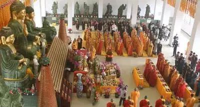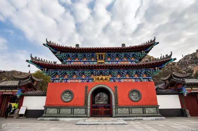 除去最前面的迎客殿,其余三殿分别供奉着四大天王、观音菩萨以及如来佛祖。寺院内百余平方米的汉白玉龙踏、十八根汉白玉龙柱、十对晚霞红玉神兽、四米高墨玉雄狮和哼哈二将等都是霞光奕奕,庄重威严。
