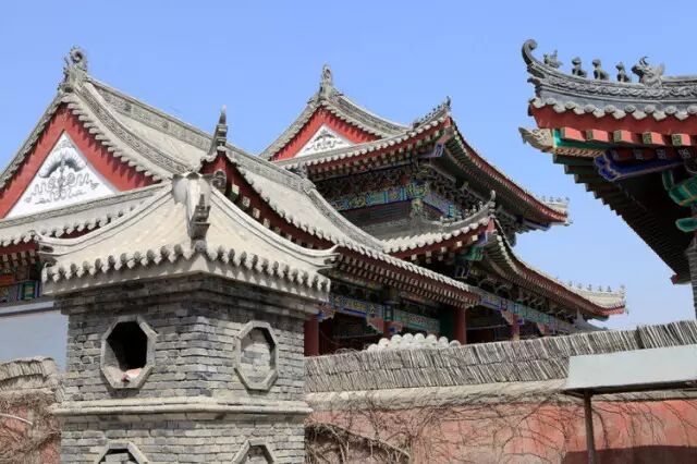 佛教寺院以黄色墙面,道教宫观以紫红色为主;