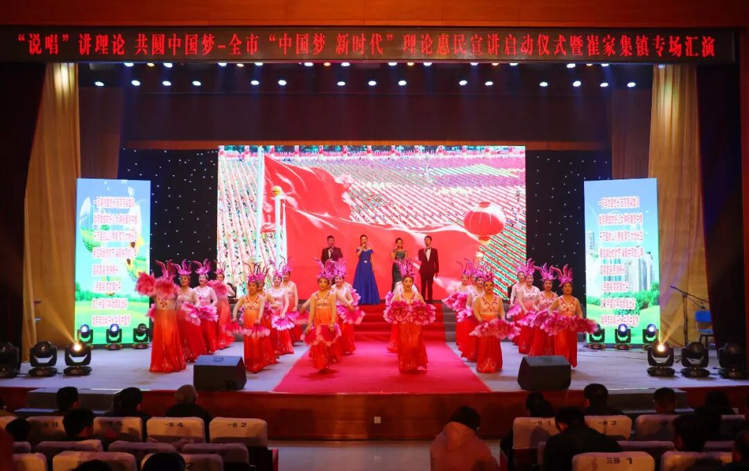 今天,在崔家集镇文化活动中心,全市“中国梦 新时代”理论惠民宣讲活动正式启动,红歌联唱、地瓜戏、茂腔、演讲、小品、歌舞、吕剧……表演形式多种多样,唱出的却是同一种声音——在习近平新时代中国特色社会主义思想指引下我们日益美好的生活。