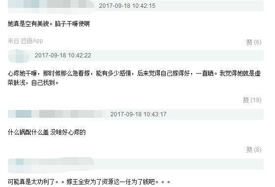 不久以前,还有很多人说她跟富豪恋爱是因为爱慕虚荣,说她“人尽可夫”配不上撒贝宁,还说她嫁给汪峰是“渣男配贱女”,是“破罐子破摔”,怎么一夜之间就转了风向,说她现在才是真正的活出了自我?