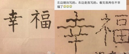 “左边媳妇写的,右边是我写的。看完我再也不幸福了!”