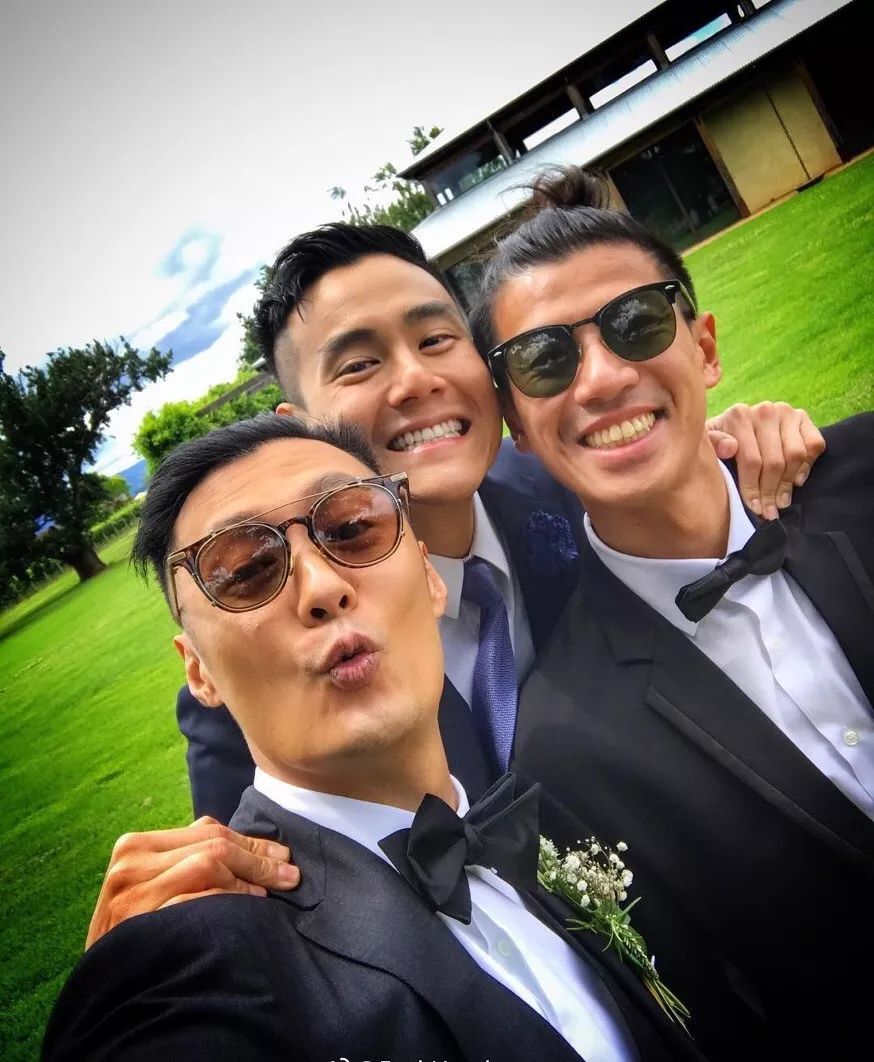 在余文乐的婚礼上,不仅和彭于晏他们合照,而且还是妥妥的伴郎!