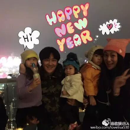 今天凌晨,陈浩民孕妻蒋丽莎在微博晒出一家人甜蜜跨年的合照