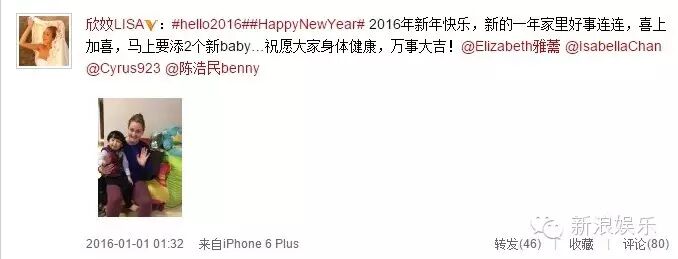 看起来这是一段普通到不能再普通的新年祝福,然而却在不经意间透露出巨大的信息量→“马上要添两个新baby”