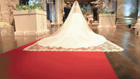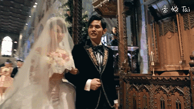 杰伦穿着巴洛克风格的复古西装礼服,昆凌拖着Mikael D婚纱的大摆尾,一起走在英国Selby Abbey教堂的红毯上,你们就说梦幻不梦幻!