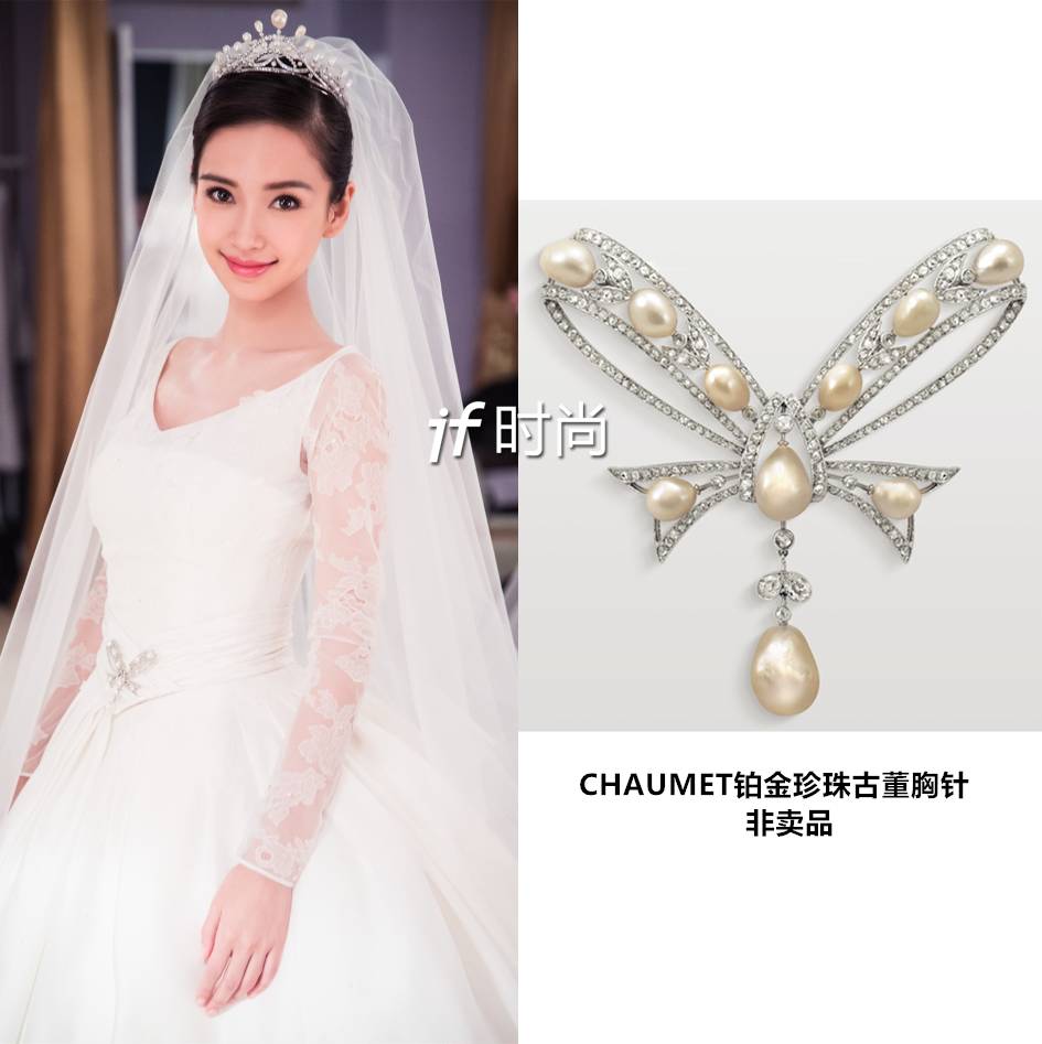 ▲Baby在腰间佩戴的CHAUMET铂金珍珠胸针也是大有来头,同样由Joseph Chaumet约瑟夫·尚美先生创作,诞生于1910年间,原为11世纪法国显赫贵族La Rochefoucauld家族所定制。