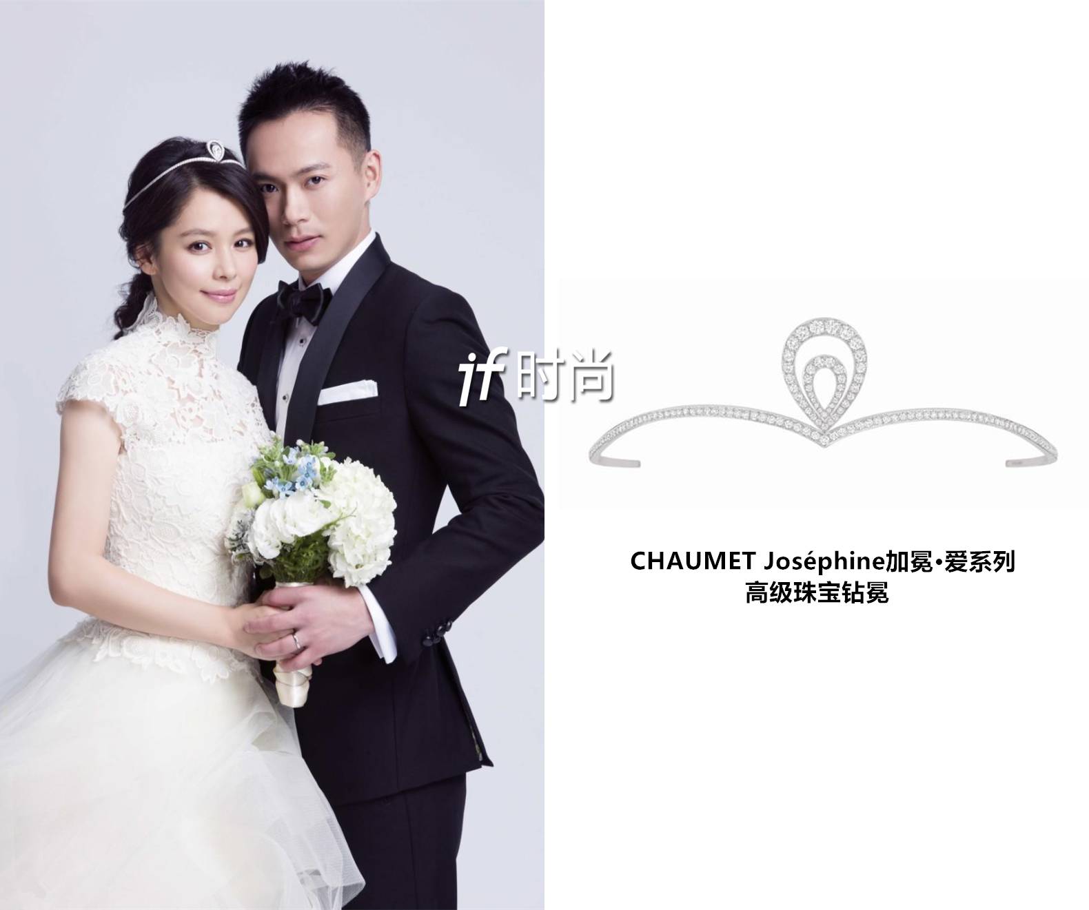 两人的诚意与甜蜜打动了CHAUMET,为表示对这对新人的祝福,CHAUMET破例借出了古董钻冕与古董胸针。