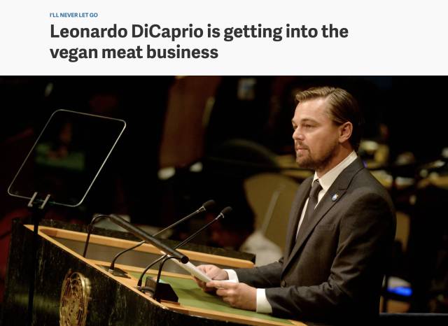 莱昂纳多再次投资食品行业,这次是Beyond Meat,一家以做“素肉”而闻名的公司。此前比尔盖茨、Twitter 两位联合创始人 Biz Stone 和 Evan Williams、前麦当劳 CEO Don Thompson,通用磨坊旗下风投公司 301 和美国最大肉类制造商泰森也都投资了这家公司。