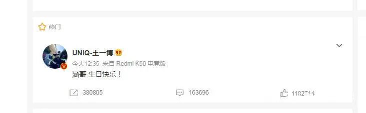王一博对汪涵就是有情有义的!汪涵生日到来这一天,王一博在社交平台上发布新消息,表达了对汪涵生日的祝福之情。一句“涵哥,生日快乐!”,流露出王一博对汪涵的关心和问候。