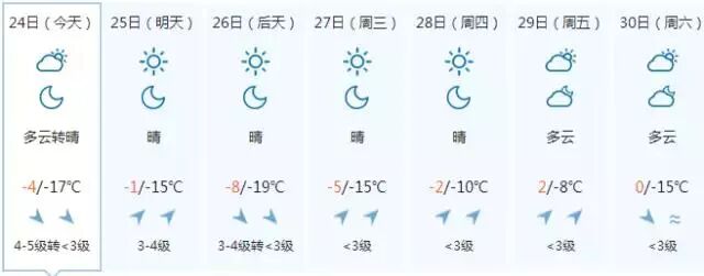下周全省气温起伏很大,周二是最冷的一天,偏北部最低气温在-20℃上下。随后气温一路回升,到下周四、周五最高气温又回到0℃以上了。而且从最新的中期预报看,周五这一天不仅是下周最暖的一天,2017年最后一场雪也有望提前在这一天出现。