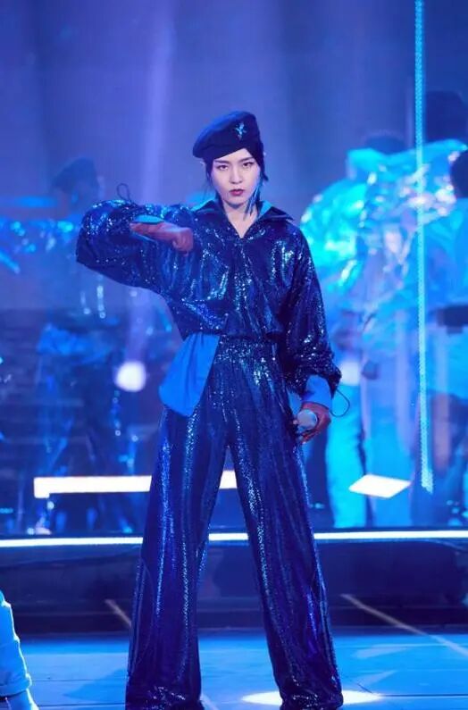 一身亮片设计的连体裤,深蓝色的色调让整个人充满了气场,亮片的元素让整件衣服时尚前卫!上半身的宽松风格,不仅达到了遮肉显瘦的目的也让整个人充满了韩范的潮流感!一般身是阔腿裤的设计,让周笔畅的大长腿看起来简直有两米长!再搭配上一款深蓝色的空军帽,让周笔畅更加高挑,这样的周笔畅真的非常迷人!时尚从来没有标准答案,让我们勇敢做自己就好!