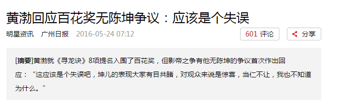 百花奖官方公布第33届提名名单已过一周,8项提名领跑的《寻龙诀》主演陈坤,也就是和菜头提到的“不存在先生”却不在提名名单中。选不上也就罢了,居然连提名都给落下了……