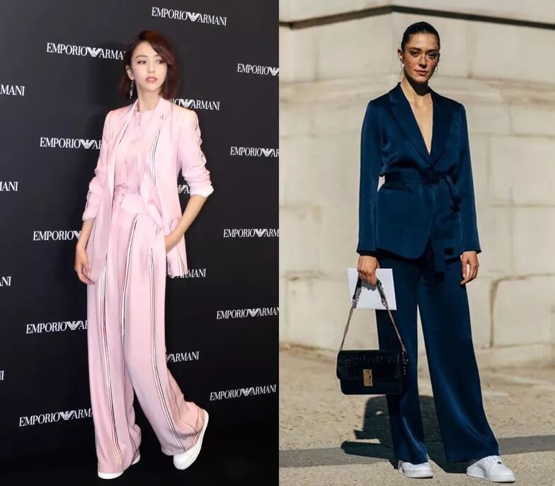 轻薄的西服套装搭配小白鞋可以让你抛掉严肃感,宽松的版型又能隐藏掉多余的赘肉,这样的look日常穿也没问题▼