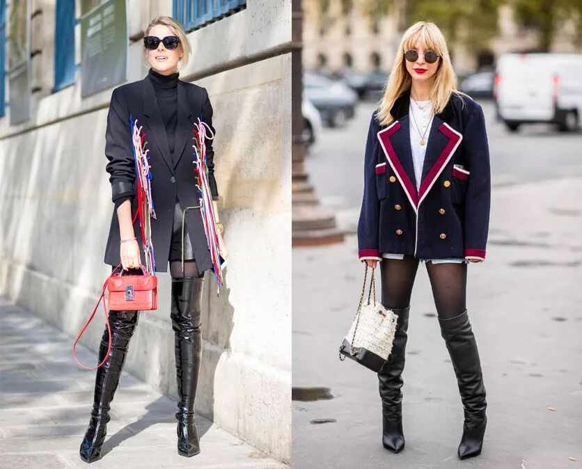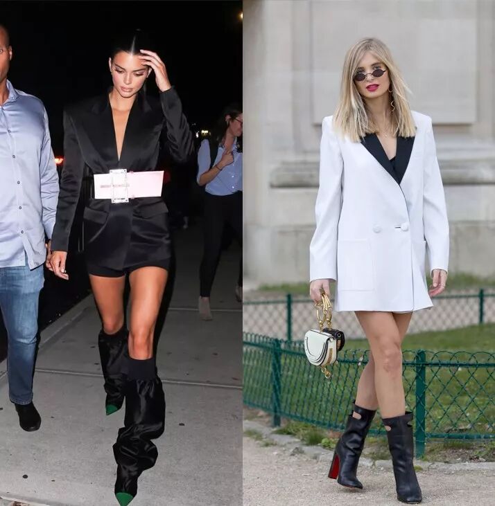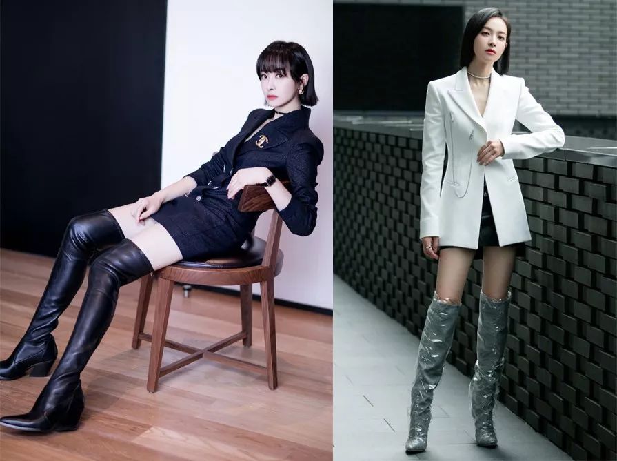 西装裙柔软中包含着硬朗,V领的设计不经意间就能露出小性感,搭配过膝长靴魅力瞬间加倍▼