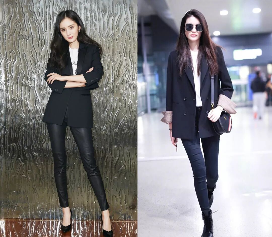 受邀出席2019秋冬纽约时装周的郑秀妍和景甜,都用帅气的西装搭配性感长裙,着实引人注目▼