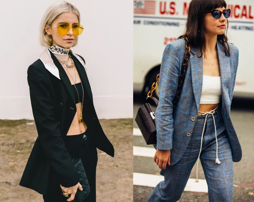 深色西装内搭亮色抹胸内衣就偏日常一些,想不到西装还能这样美!▼