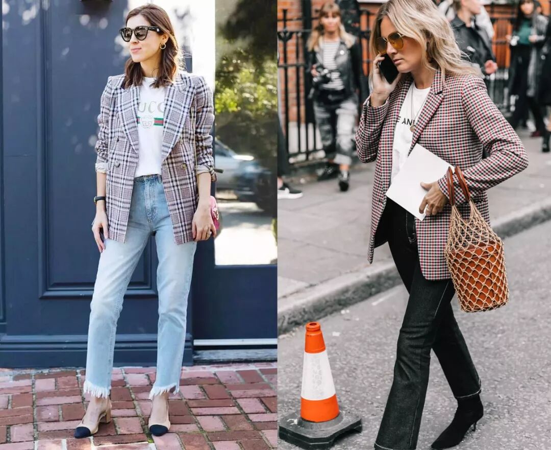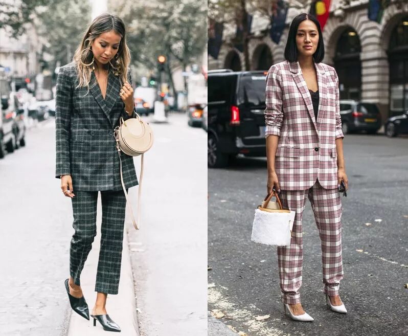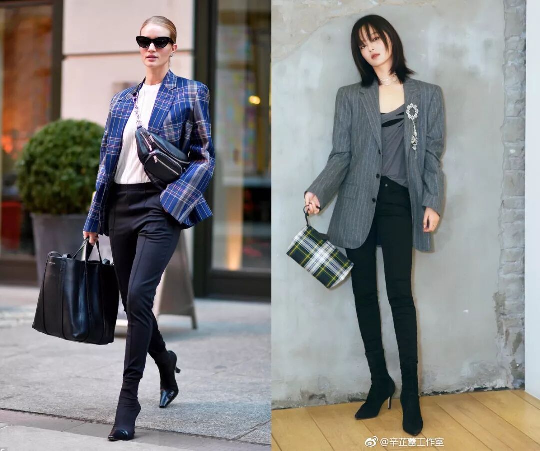 格纹西服套装本身就足够抢眼,搭配纯色高跟鞋就能穿出御姐范儿▼