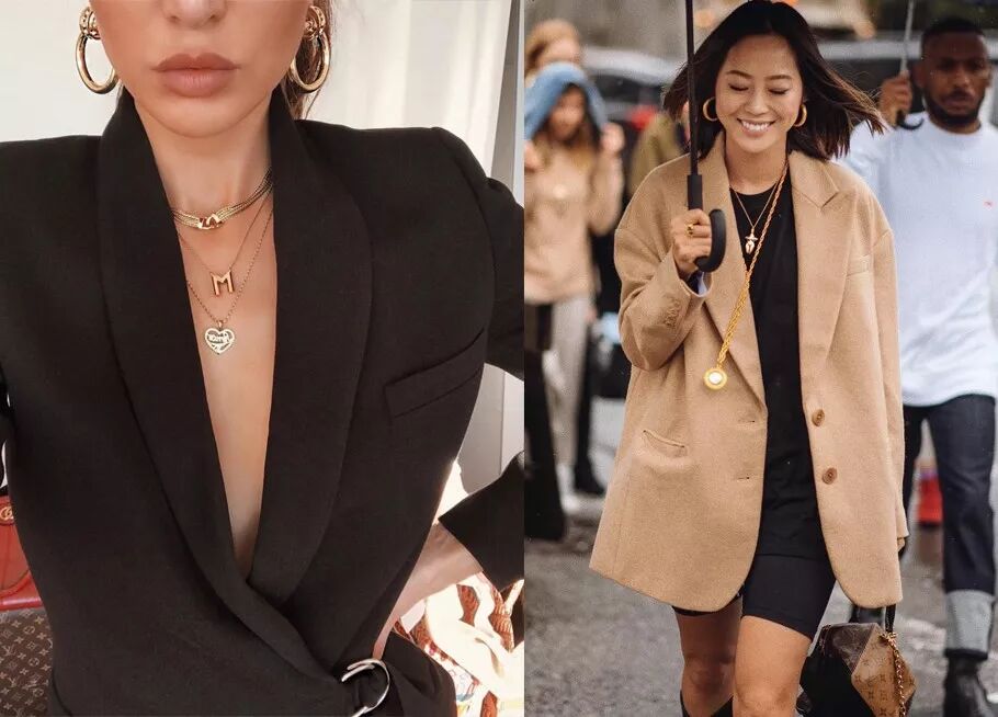 西装本身就很硬朗,和优雅的细链条简直配一脸▼