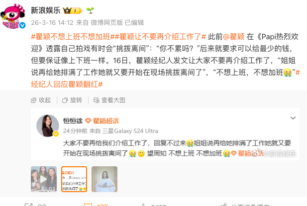 瞿颖的经纪人在微博上现身回应,不是现场接活儿,而是当众“求饶”: