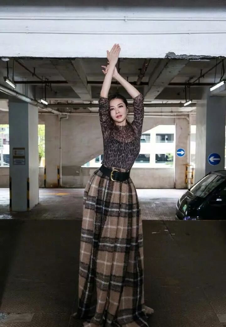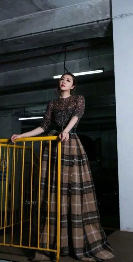 看看熊黛林这一身搭配,豹纹的上衣看起来特别的性感了,黑色的内衣若隐若现的看着特别的有魅力了,搭配了一条格子的长裙