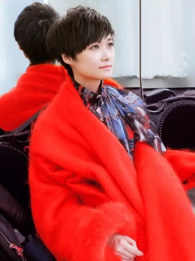 对于短发的周迅来说,一字领很衬气质,小圆领也是中规中矩的优雅选择。