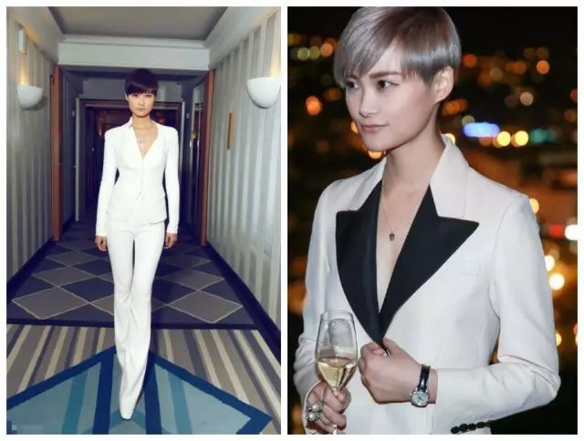 在戛纳红毯上李宇春穿了两次直线V领的西装,改善方脸轮廓的效果极佳。
