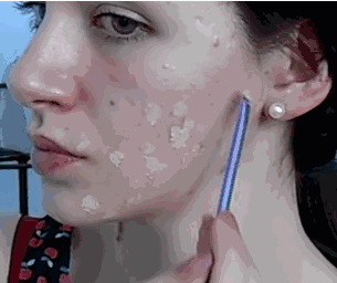 但如果你说你是有很多痘痘痘印怎么办。首先先用遮瑕来把这些瑕疵都遮住。
