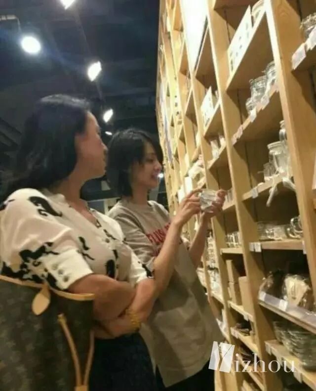 素颜和妈妈在商场买东西,没有口罩帽子,完全没有一个明星的架子嘛~