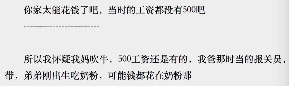 以90年代为例,有网友就透露当年一个家庭一个月也要花500块钱。