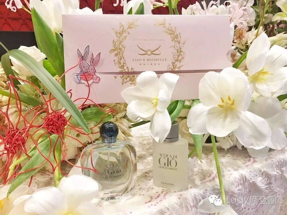 Giorgio Armani的寄情男香以及寄情女香是婚礼的现场伴手礼,以自然为灵感的男女对香寄予了这对新人与朋友喜悦时刻的用意,在充满生机的海洋气息中感受婚礼的美好。