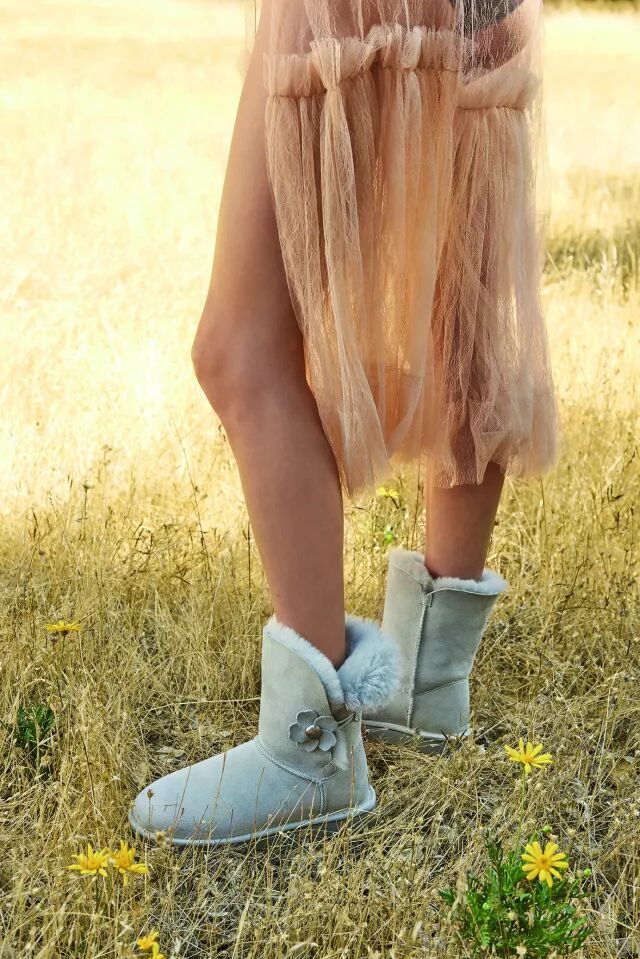这一季让全世界的少女心一起炸裂的花朵系列居然也打折了!鞋侧柔软的翻毛皮材质花朵装饰物,搭配内里17毫米羊毛内里,让舒适温暖与精致时尚同行。中筒和短筒两种高度可选。