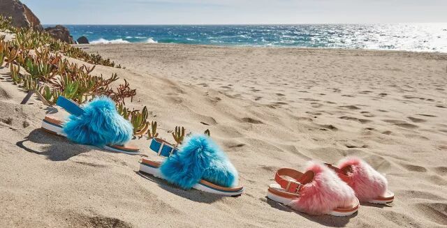 温暖柔软的皮毛拖鞋既可以在家里穿着,又可以搭配休闲装外穿出街,将UGG经典的时髦感从室外延续到室内。