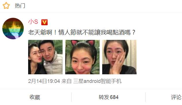 小S画风比较奇怪,在晒喝醉酒……