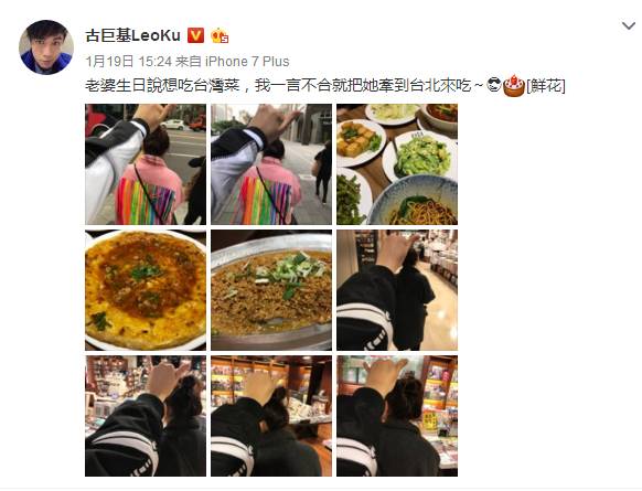 之前也说她老婆说想吃台湾菜,他就带她直接飞台北吃