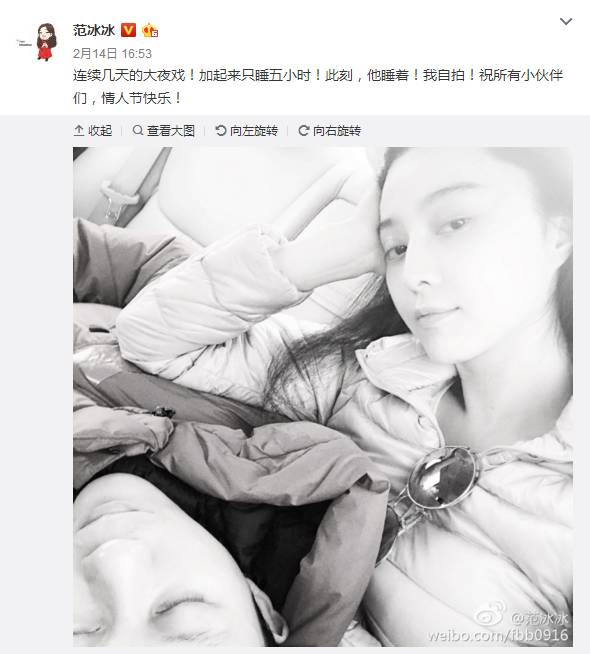 范冰冰更甜,晒了李晨躺在自己怀里的自拍