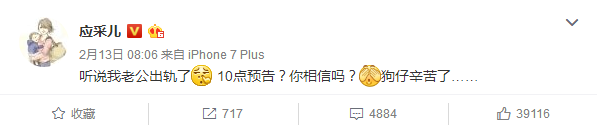 前几天还疑似有全明星探要爆料陈小春出轨的消息,应采儿也是直接在微博上回应说狗仔辛苦了