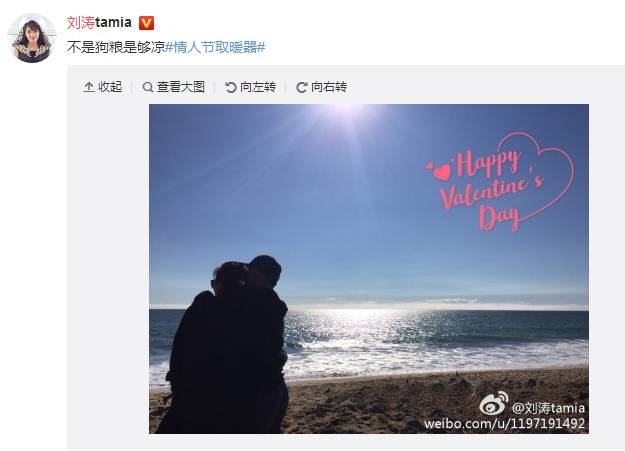 刘涛晒的是海边相拥的背影。