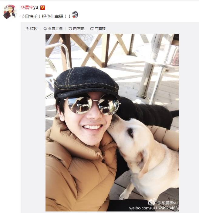 华晨宇和狗合影来祝大家节日快乐