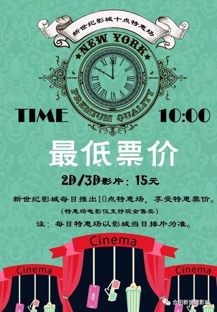 邮政信用卡用户每张卡每周日限刷1张10元观影资格,每月4次观影机会。详情咨询前台!(需在影院前台购买)