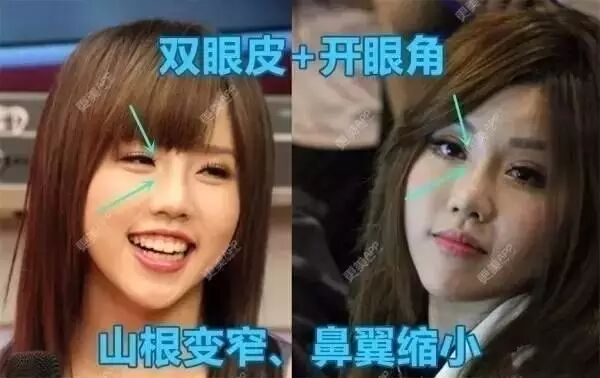 山根变窄鼻翼缩小,貌似做了鼻综合手术,双眼皮貌似也加宽过,眼角从尖变圆