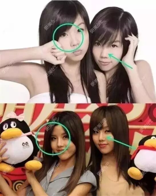 虽然人们吐槽她们整成了网红脸,但她们以前小豆眼、塌鼻子、小肉脸,只能说满满的少女感,放在现在没什么竞争力