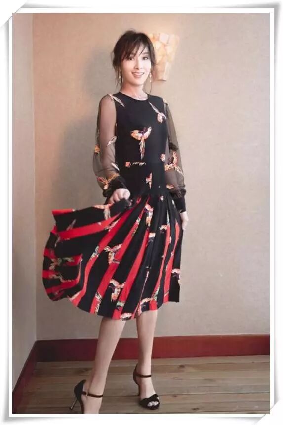 杨恭如穿网纱质地的上衣搭配条纹风的半身裙,美到极致啦,优雅同时又不失去一抹风情,这个裙摆的长度还能恰好遮挡住她小腿的曲线,真会挑衣服!