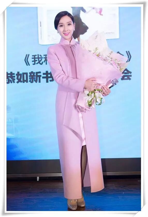 粉色的衣服真的是既不好搭配又挑人啦,不过杨恭如却是一个例外,她穿皮粉色的长外套搭配金属色的高跟鞋,把中国的古典美演绎到了极致,她的身段笔挺、修长,更加端庄、持重。
