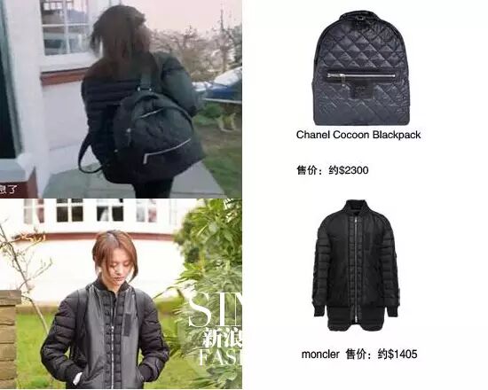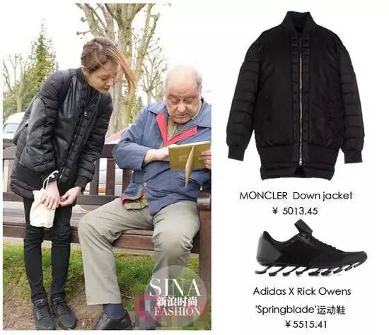 郑爽穿MONCLER拼接夹克+Rick Owens运动鞋