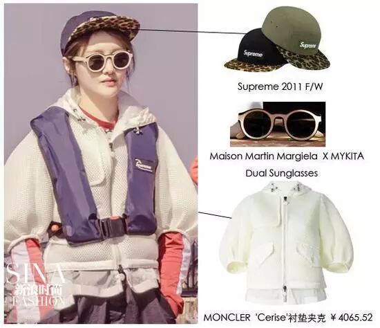 郑爽戴Supreme棒球帽+穿Moncler衬垫夹克