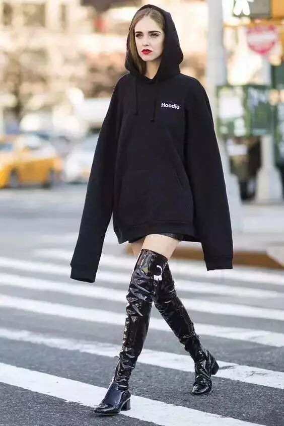 第二招:卫衣+过膝靴